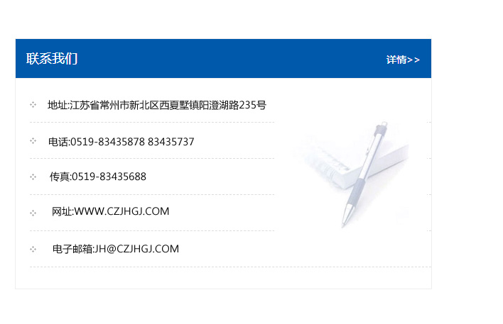 地址:常州市新北區友邦商務大廈1幢16、17層  電話:0519-85101652  傳真:0519-85112595  郵編:213022  網址:www_cz-jiayue_cn.gaojiangdianli.com  郵箱:xiajifengaa@163.com